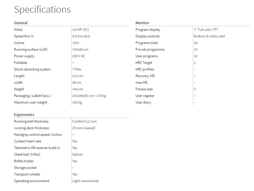 This 3HP model is the little brother of the 5HP and its speed range is 0.8 km up till max. 20 km per hour, which makes this model very suitable for intense training at high and low speed.