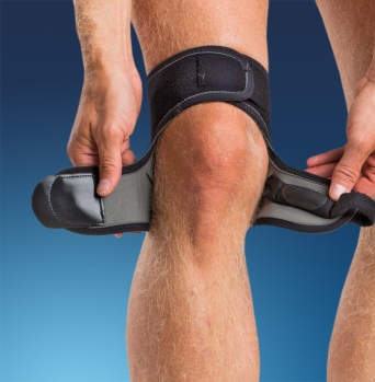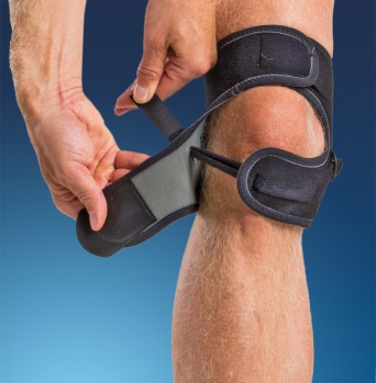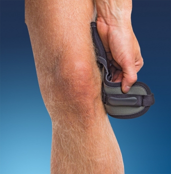This is a small, discreet and effective brace for patella tendon problems. It has a low profile design to allow you to wear it under clothes. In the front side over the patella tendon, there is a pad with a surface friction material to provide a more effective support. The pad is integrated into the brace and has two straps attached. The straps make it possible to adjust the anterior pressure over the patella tendon without disturbing the circulation in the knee fold. The straps thread through the D-rings on the side and are then attached on the lower front of the brace. The thigh part has a friction material integrated that prevents migration during activity. The knee fold area has the breathable Neptune material for optimal comfort. The closure on the brace is made of micro hook and loop.